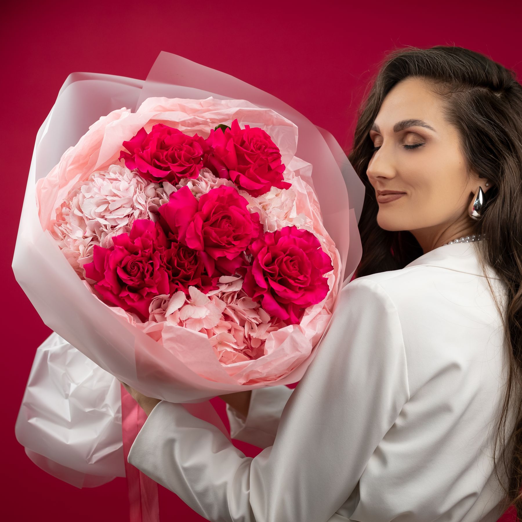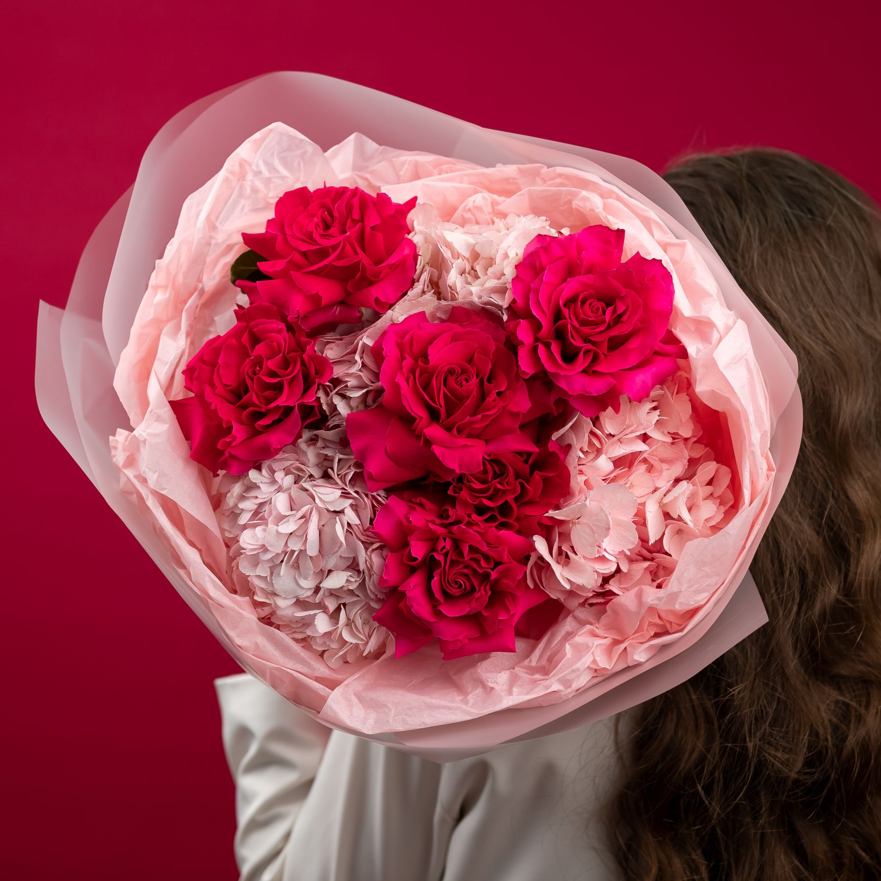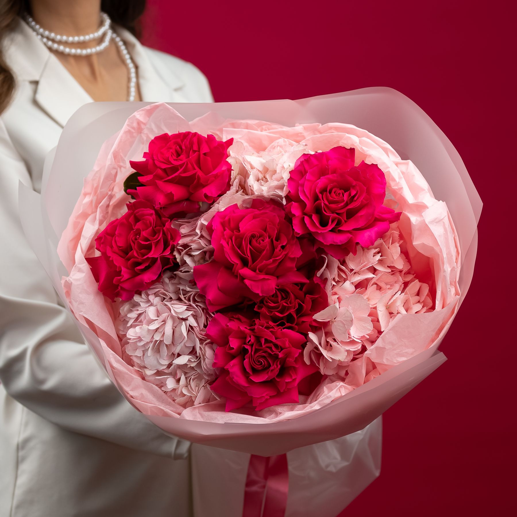 французская розовая роза - 6 шт