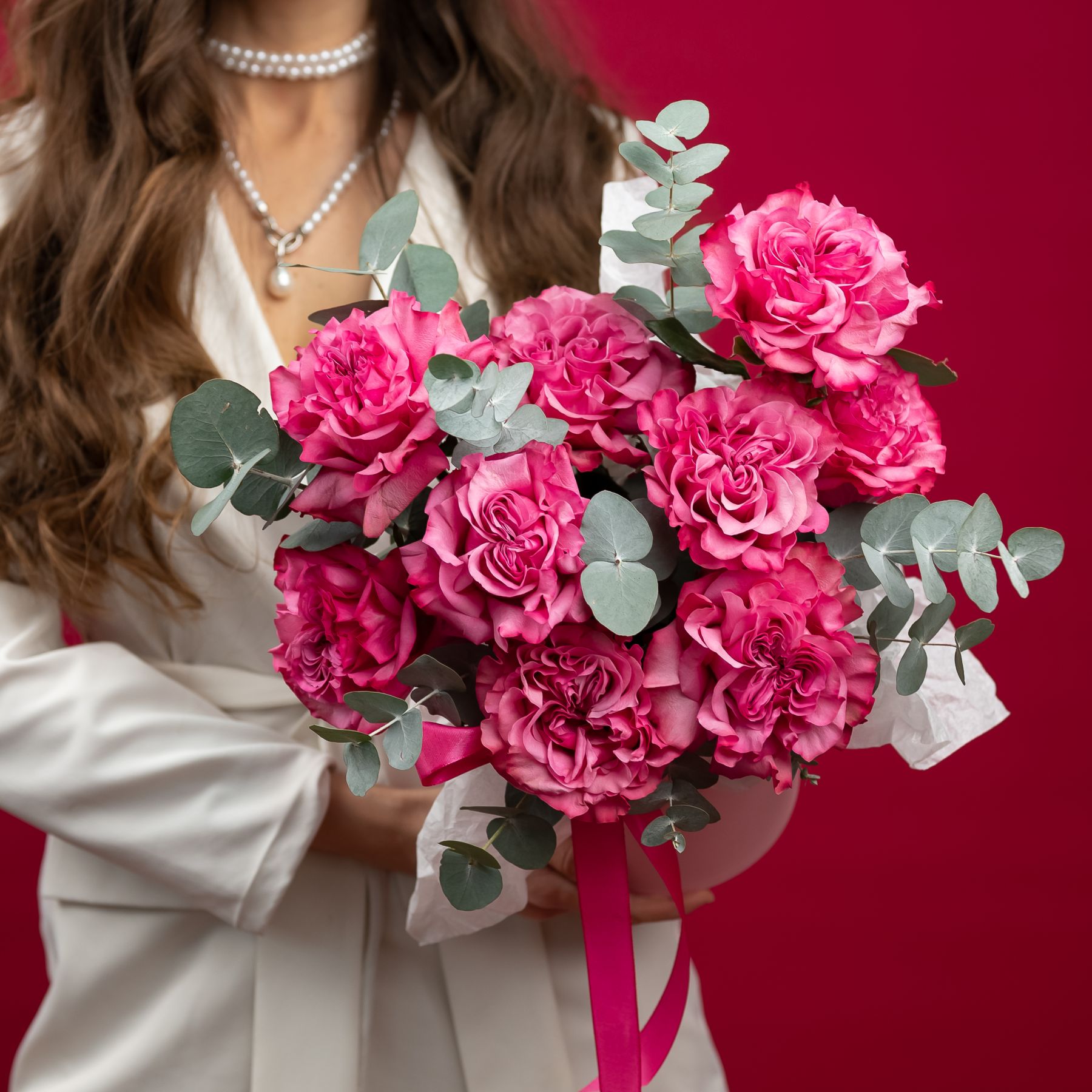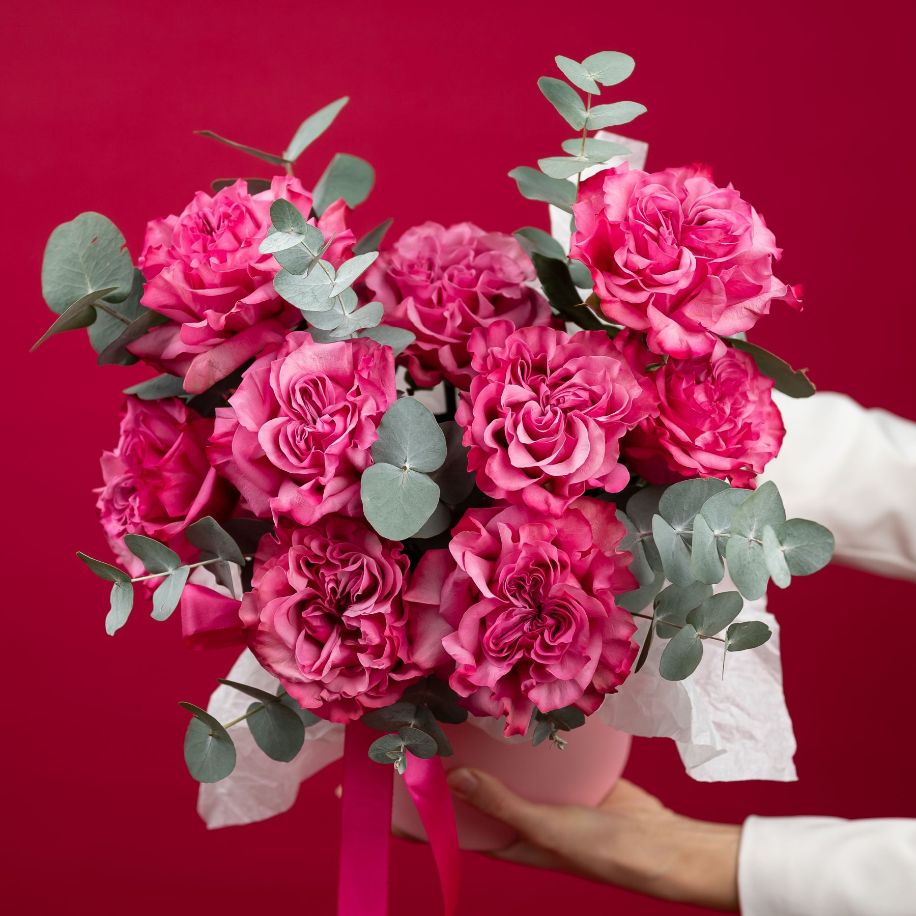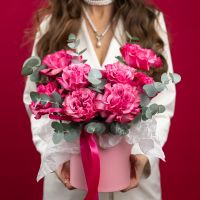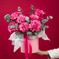 Состав: роза кантри блюз - 9 шт эвкалипт - 5-6 веток шляпная коробка - S