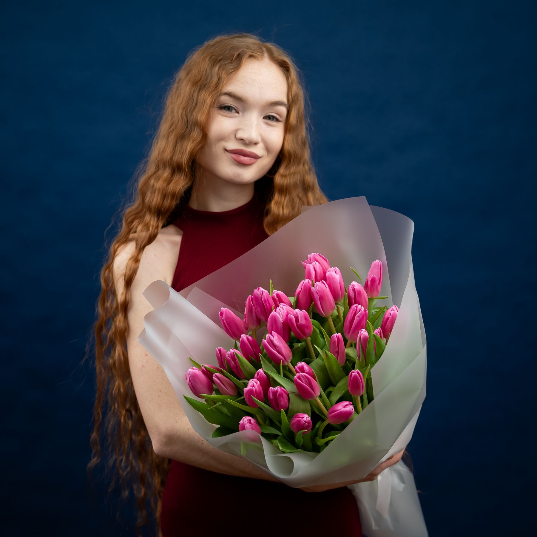 Тюльпаны розовые насыщенные 35шт